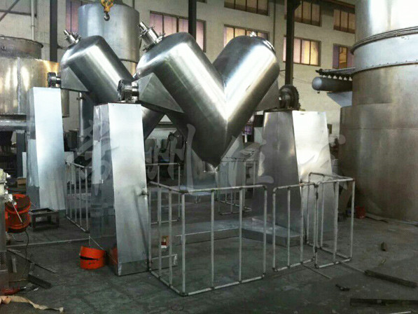 該機(jī)通過機(jī)械傳動(dòng),使不對稱的V型圓柱體內(nèi)的物料做往復(fù)翻動(dòng),達(dá)到均勻混合之目的。