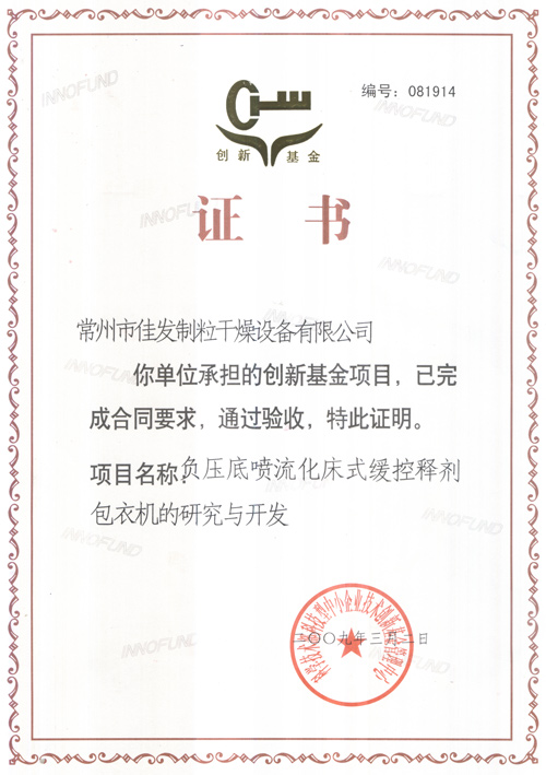 創(chuàng)新基金驗(yàn)收合格證