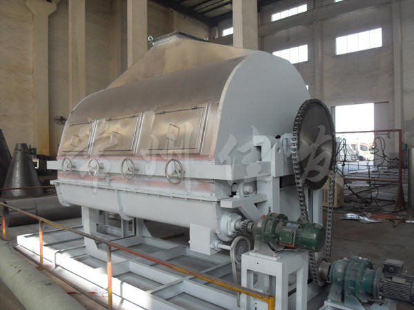 The working principle of the TG series drum dryer is to allow liquid or slurry like materials to form a thin film on the surface of the drum heated by water vapor or other carriers, and it is dried during one revolution of the drum. The product is scraped off with a scraper, exposing the surface of the drum and then contacting the raw materials to form a thin film for drying.