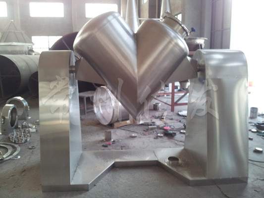 This machine uses mechanical transmission to make the materials inside the asymmetric V-shaped cylinder undergo reciprocating flipping, achieving the goal of uniform mixing.